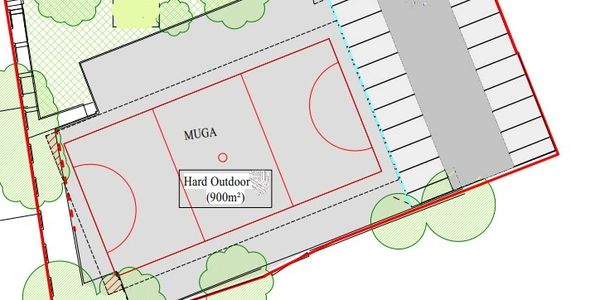 Our Multi Use Games Area is a 900sqm external hard surfaced area suitable for sports activities or other events. The area has black metal fencing, 2m in height all the way round.